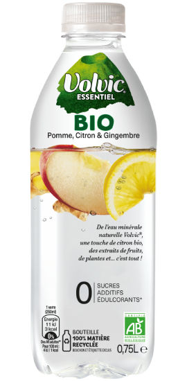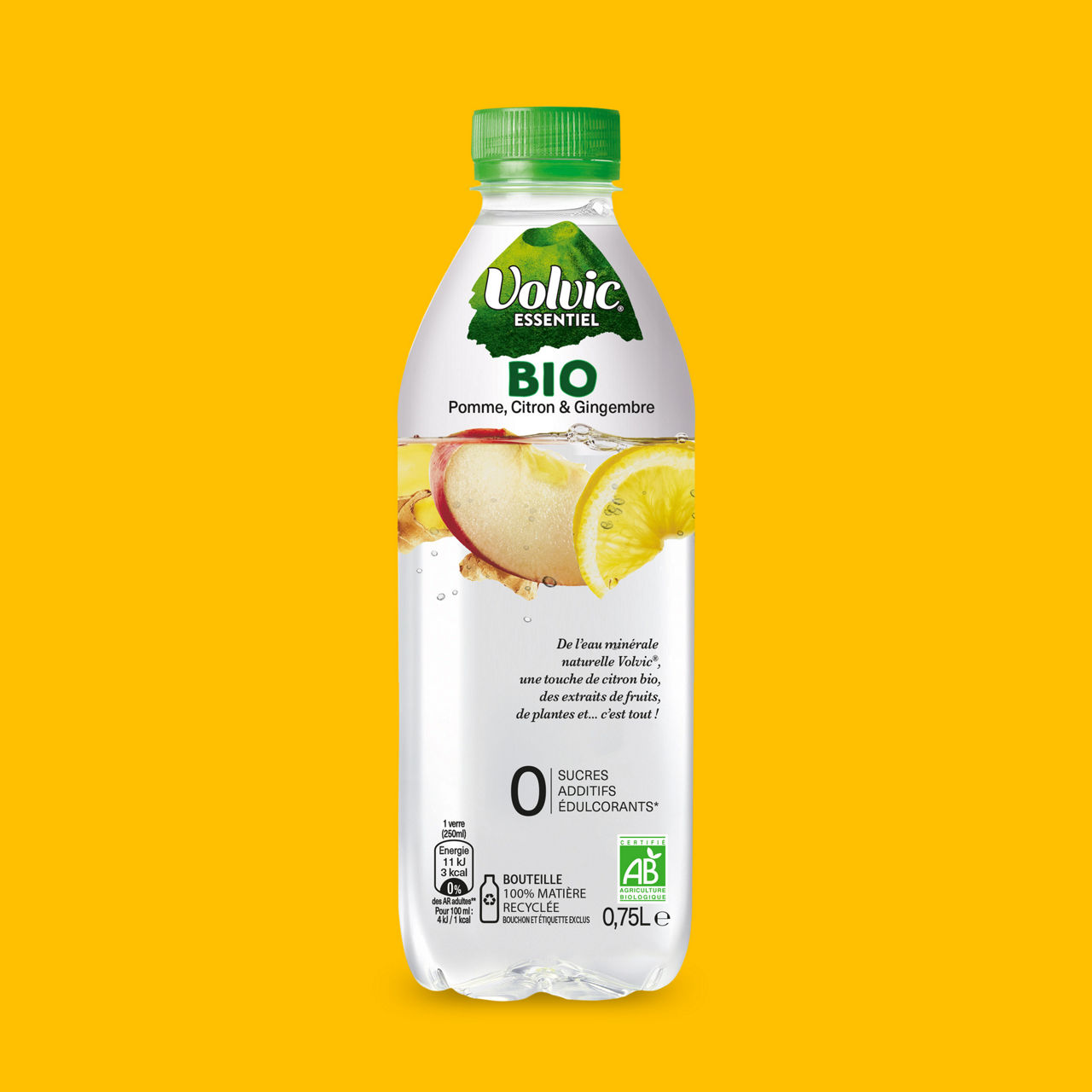 Une délicate recette BIO associant l’unicité de l’eau minérale naturelle Volvic à des extraits de pomme, de citron et de gingembre
